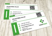 Elegantní vizitky s dominantním jménem v pruhu a QR kódem či bez něj v různých barevných kombinacích.
